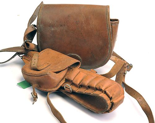 A LEATHER CARTRIDGE BAG AND LEATHER AMMUNITION BELT (2)