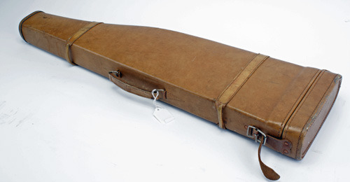 A SINGLE LEATHERETTE LEG-OF-MUTTON GUNCASE,