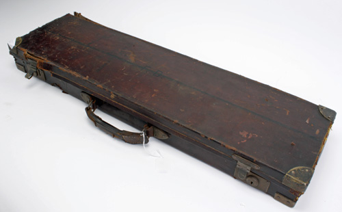 A BRASS-CORNERED OAK & LEATHER SINGLE GUNCASE,