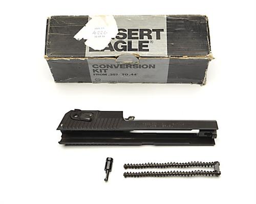 A BOXED SLIDE ONLY FOR A .44 (MAGNUM) IMI DESERT EAGLE, serial no. 10, with double recoil spring and piston