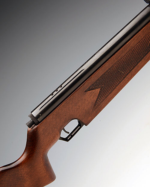 A .177 BREAK-BARREL AIR-RIFLE SIGNED CZ, MODEL '631', serial no. 629832, recent, with 21in sighted barrel with manual lock, blued air-chamber with machine grooves for a telescopic sight, beech stock with chequered fore-end, storage marks to wood but appearing little used