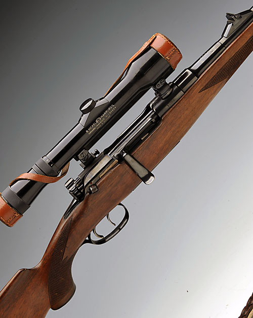 ** STEYR-DAIMLER-PUCH A.G. 7X64MM 'MODEL 1950' BOLT-MAGAZINE SPORTING RIFLE, serial no. 13063, 26 3/4in. replacement barrel by F. Stampfli Waffen (Luzern), nitro reproved in 2013, open sights and folding leaf sight, ramp-mounted bead fore-sight, receiver mounted with a B. Nickel Variabel 2 1/2-6x E/D/S telescopic sight in quickly-detachable mounts, detachable magazine, set triggers, pistolgrip stock with cheekpiece, sling swivels, 14 5/8in. pull including 1in. rubber recoil pad