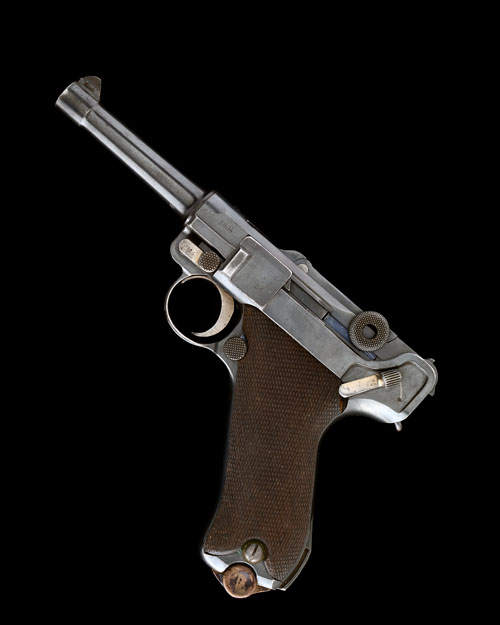 dated for 1916, with blued 4in. barrel, dove-tailed blade fore-sight, notch rear-sight to the rear toggle-link, the top of toggle signed with the 'DWM' monogram, blued receiver, blued frame, chequered walnut grips (small chip below safety-catch), all matching numbers except magazine, the whole retaining much original finish and 'straw' colour to ancilliaries