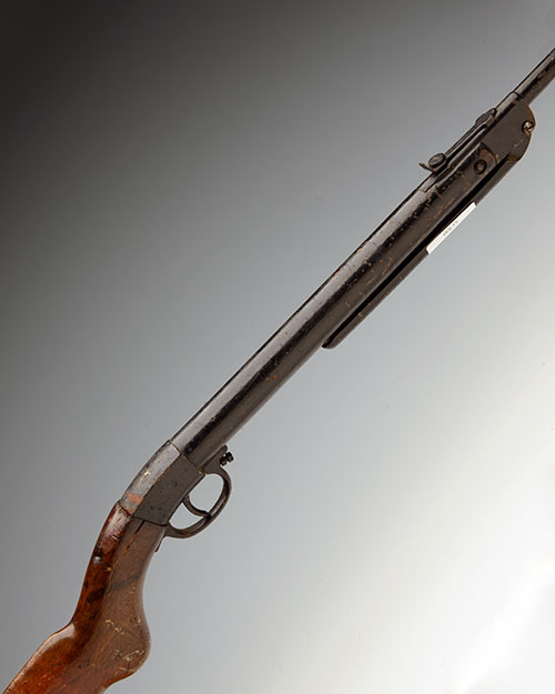 TWO .177 BREAK-BARREL AIR-RIFLES SIGNED DIANA, MODELS '20' & '27', no visible serial numbers, the first dated for July 1935, of nickel-pated tinplate construction, the second of similar date (stock cracked at wrist), both rifles painted black and worn