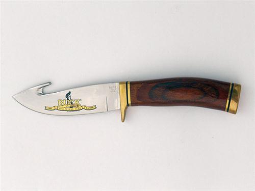 A LIMITED EDITION FIXED-BLADE HUNTING KNIFE SIGNED BUCK, MODEL 'BUCK COLLECTORS CLUB 1995 1 of 160', ref. E191-E1-0, with 4 1/4in. drop-point blade, built in gutting hook to back of blade, commemorative issue details etched in gilt on the blade, brass furniture and hard-wood hilt, complete with its presentation box, not supplied with sheath