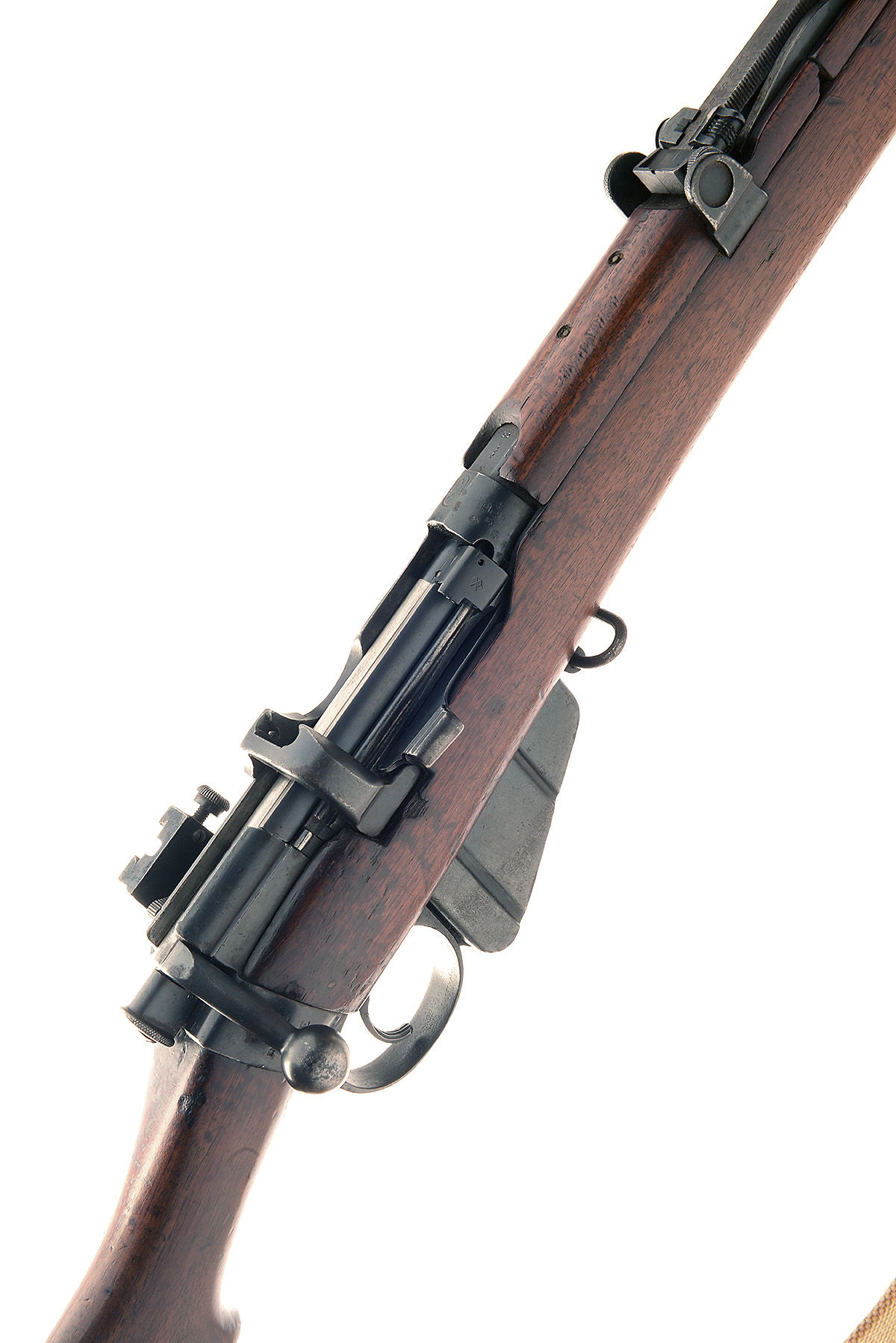 ** ENFIELD .303 'SHT.L.E. III' BOLT-MAGAZINE SERVICE RIFLE, serial no. E314, 25 1/8in. nitro barrel, ramp-mounted fore-sight, with bunny ear protectors, tangent rear-sight, with a dovetail mount for an aperture rear-sight, manual safety, detachable box magazine, canvas sling
