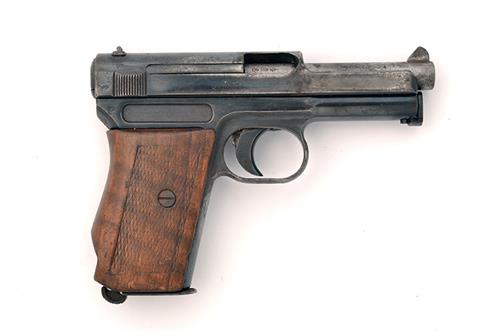 ** A 7.65mm (.32 ACP) SEMI-AUTOMATIC POCKET-PISTOL SIGNED MAUSER, MODEL 'M1934', serial no. 138572, with 3 1/4in. exposed barrel, blued slide and frame, walnut one-piece chequered grip (modified for a lanyard loop, missing), complete with magazine, finish worn