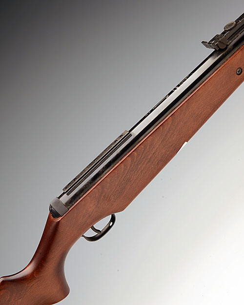 A SCARCE .177 BREAK-BARREL AIR-RIFLE SIGNED DIANA, MODEL '35 COMMEMORATIVE', serial no. 01252248, for 1982 and number 813 of 1000 made, with 19 1/2in. sighted barrel, blued air-chamber with model details and applied telescopic sight rail, plain beech half-stock with inlet 'DIANA' medallion to the fore-end, together with remenants of its manufacturers card carton, the gun appearing unused (small chip to pistol-grip)
