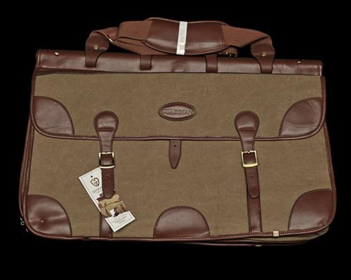 † A NEW AND UNUSED LARGE CANVAS AND LEATHER TRAVEL BAG