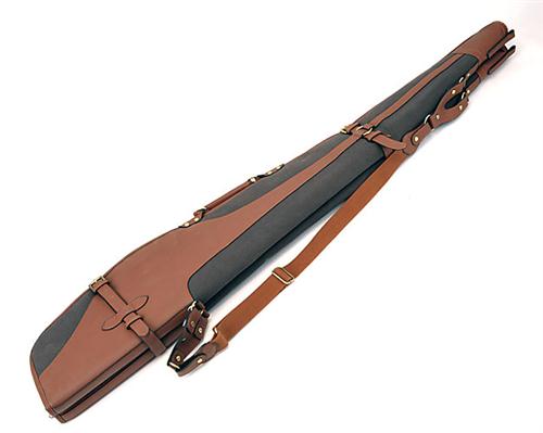 † A NEW AND UNUSED CANVAS & LEATHER FLEECE-LINED DOUBLE GUN/RIFLE SLIP, canvas & leather shoulder strap, brass fittings