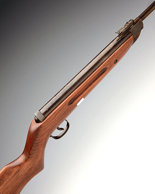 A .177 BREAK-BARREL AIR-RIFLE SIGNED DIANA, MODEL '25', serial no. 58306, dated for December 1960, with sighted 16in. barrel, plain air-chamber marked 'DRILLED FOR TELESCOPIC SIGHT', beech half-stock, traces of finish