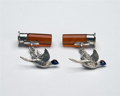 A PAIR OF STERLING SILVER AND AMBER 'CARTRIDGE & PHEASANT' CUFFLINKS,