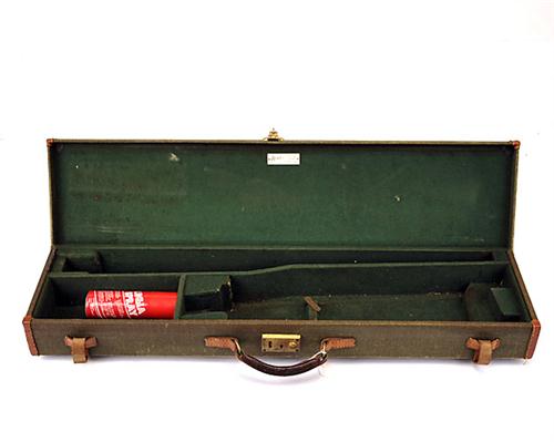 A 'BRADY' GREEN CANVAS & LEATHER SINGLE GUNCASE, suitable for 29in. barrels, the interior lined with green baize, brass lock (key missing)