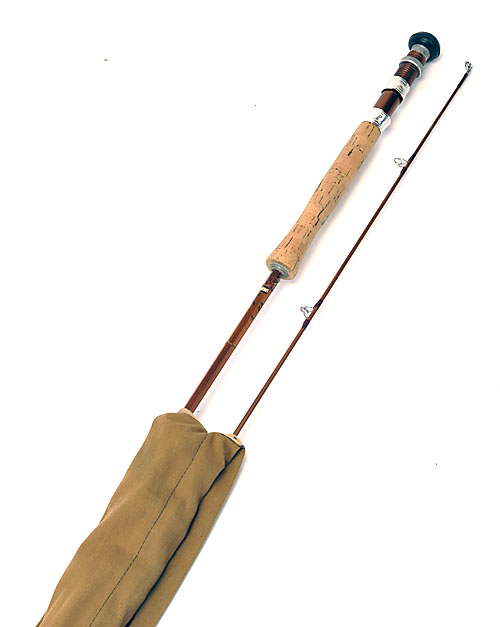 A SHARPE SPLIT CANE FLY FISHING ROD, made by J.S Sharpes Ltd 9 ft. single handed salmon rod with extension handle and manufacturers rod bag