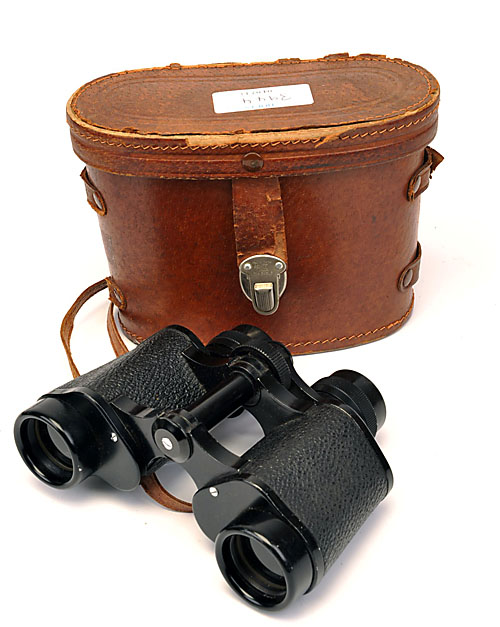 A PAIR OF ZENITH BINOCULARS, triple tested 8 x 30 Field 7.5 No. 50655 with leather carry case , shoulder strap missing