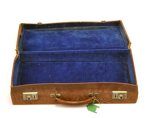 A MEDIUM SIZED LEATHER ATTACHE CASE, with the initials A.W.H on the lid, key missing