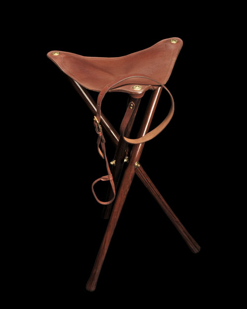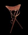 JAMES PURDEY & SONS AN UNUSED FINE LIGHTWEIGHT WOOD AND LEATHER TRIPOD SEAT,