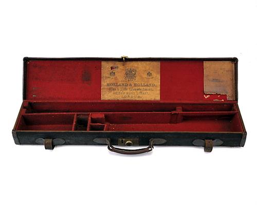 A 'HOLLAND & HOLLAND' CANVAS & LEATHER SINGLE GUNCASE, suitable for 30in. barrels, the interior lined with red baize, brass lock (key missing), the lid interior with a 'HOLLAND & HOLLAND' trade label,