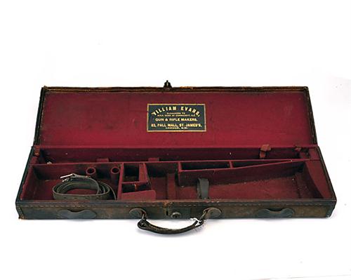 A WILLIAM EVANS CANVAS & LEATHER SINGLE HAMMERGUN CASE,