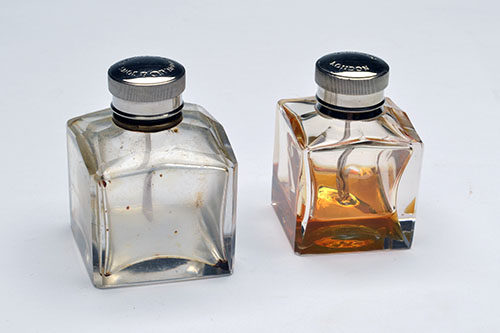 TWO GLASS OIL BOTTLES,
