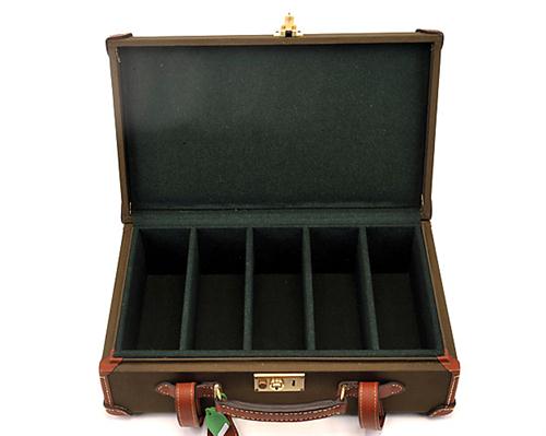QUALITY CANVAS AND LEATHER CARTRIDGE MAGAZINE, capacity 250, colour green with key