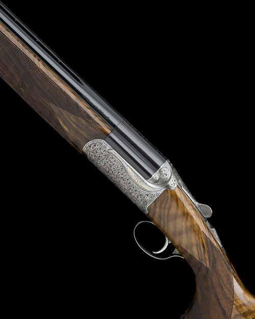 32in. nitro barrels with ventilated mid-rib and 9mm ventilated matt top-rib scroll engraved at the breech end, 2 3/4in. chambers, multi chokes (with spares), hold-open toplever, manual safety with integral triggerplate release catch and gold-inlaid 'SAFE' detail, selective single trigger, the action and furniture profusely carved with acanthus scrollwork set against a matt background, gold-inlaid with the makers name and the model designation, triggerplate signed 'C. Marocchi', bright finish, 15 1/2in. pistolgrip stock with engraved pistolgrip cap, including 1in. recoil pad, weight 8lb. 9oz., in its makers universal case