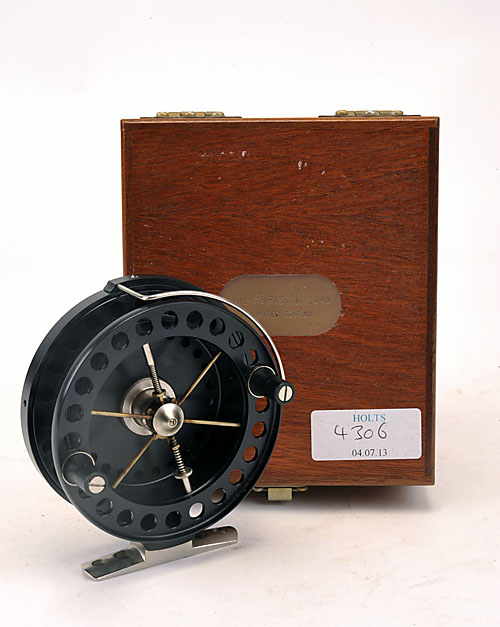 A VINTAGE JW YOUNGS PURIST II 2048 CENTREPIN REEL, 3 3/4" Centrepin reel part of a Limited Edition of 250 in a real leather , sheepskin lined case. The main body and spool are machined from high quality aluminium bar stock and are black anodised for protection. Complete with wooden presentation box. Certificate missing.