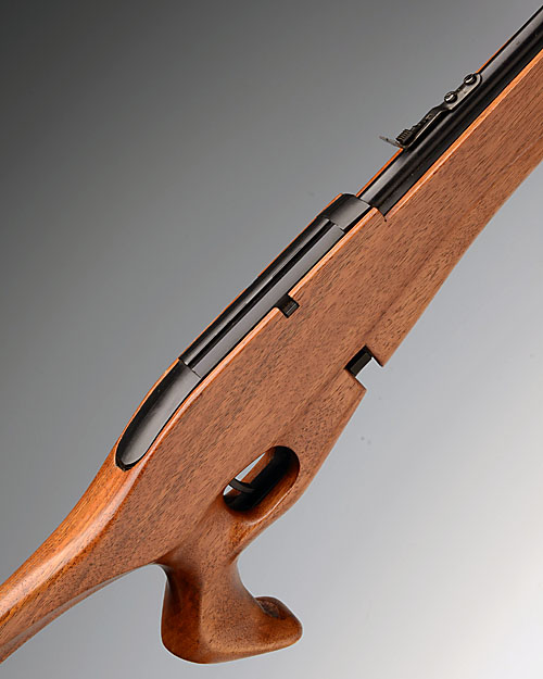A .177 CO2 POWERED REPEATING AIR-RIFLE SIGNED CROSMAN, MODEL '1077', no visible serial number, recent, in imitation of a Ruger 10-22 rifle, fitted with a special custom walnut butt-stock, possibly by Gary Cane, complete with three spare magazines