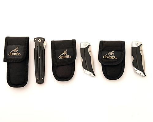 THREE GERBER KNIVES, including a 'GERBER AR 3.25 CAMP / HUNT / FISHING' knife , a 'GERBER AR 3.25 SERRATED EDGE', and a 'GERBER DOUBLE BEVEL' tactical knife combo edge, all in manufacturers cartons (3)