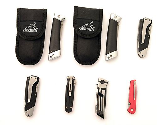 SEVEN GERBER KNIVES, including 'GERBER MINI COVERT' tactical knife, 'GERBER OBSIDIAN' lock knife, 'GERBER OBSIDIAN' lock knife multi tool comb, 'GERBER SANTIAM' plain edge knife, 'GERBER SANTIAM' combo edge knife, 'GERBER TRAVERSE' clip knife and a 'GERBER LTR' folding knife (7)