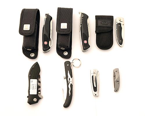 AN ASSORTMENT OF SEVEN KNIVES, including a 'SMITH & WESSON HOMELAND SECURITY CAMO' serrated knife, a 'SMITH & WESSON BABY SWAT' plain knife, a 'COLD STEEL KUDU' lock release knife, a 'BROWNING MODEL T1' lock knife, a 'FALKNIVEN MODEL P' folding knife, 'A WENGER ALINGHI 177' swiss army knife and a 'WENGER ALINGHI 176' swiss army knife all in manufacturers cartons (7)
