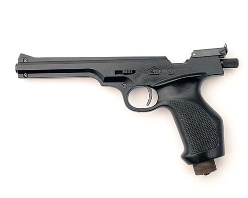 A CASED .177 CO2-POWERED TARGET AIR-PISTOL SIGNED LOV, MODEL 21, no visible serial number,