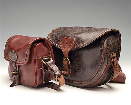 A PIGSKIN CARTRIDGE BAG AND A SMALL LEATHER CARTRIDGE BAG