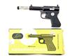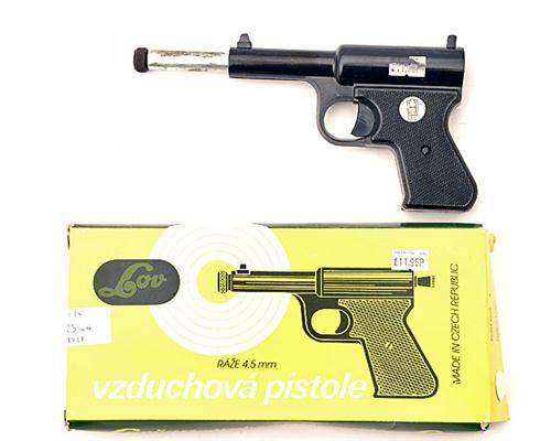 A COLLECTION OF FOUR .177 PUSH-IN BARREL AIR-PISTOLS, no visible serial numbers, all post-war, the first signed 'LOV', model 'LOV2' complete with its card carton, the second signed 'DIANA', model 'SP50' (paint losses), the third signed 'T.J. HARRINGTON', model 'THE GAT' (paint losses) and the last signed 'DIANA', model '2' in good order dated for December 1963