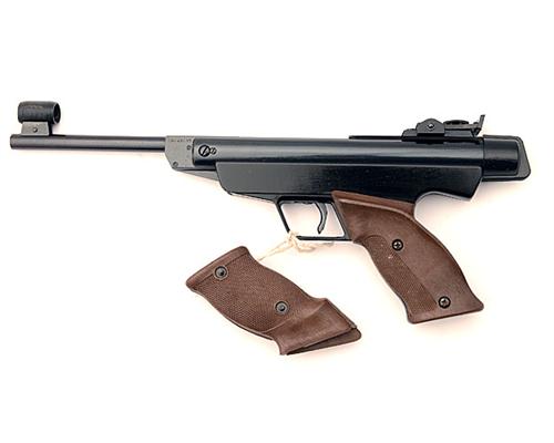 A .177 BREAK-BARREL AIR-PISTOL SIGNED ORIGINAL, MODEL '5G', no visible serial number, circa 1980, with 7in. sighted barrel, plain air-chamber, black painted alloy frame and anatomical right-hand plastic grips, complete with a spare pair of left-hand plastic grips