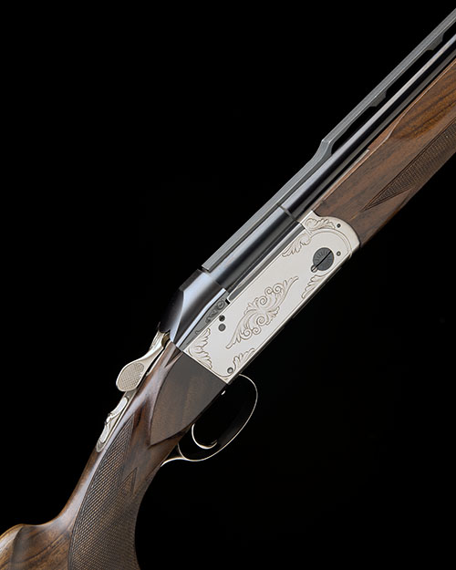 30in. nitro barrels with no mid-rib, 10mm raised ventilated matt top-rib with intermediate bead, 3in. chambers, multichokes (with spares), hold-open toplever, manual safety, selective single trigger, border and partial acanthus scroll engraving, satin finish, 14 1/2in. figured pistolgrip stock with raised cheekpiece, including 1 1/2in. rubber recoil pad, weight 8lb. 12oz., in its makers universal case