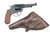 ** A 7.5mm (SWISS) SIX-SHOT SERVICE REVOLVER SIGNED WAFFENFABRIK BERN, MODEL '29', serial no. 50718, circa World War Two, with sighted 4 1/2in. barrel, fluted cylinder, field-strippable frame and chequered resin grips (one chipped), much original finish throughout and complete with an original leather holster