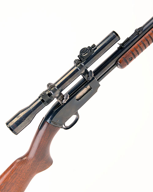 ** WINCHESTER .22 S.L. OR L.R. 'MODEL 61' PUMP-ACTION REPEATING TAKE-DOWN SPORTING RIFLE, serial no. 110485, 24in. nitro barrel, 3/4in. tubular magazine, bead fore-sight, v rear-sight, 13in. pistolgrip stock,fitted with a telescopic sight