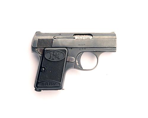 A 6.35mm (.25ACP) SEMI-AUTOMATIC PISTOL SIGNED FABRIQUE NATIONALE, MODEL BROWNING PATENT BABY, serial no. 124540,