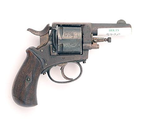 A .450 (BOXER) FIVE-SHOT DOUBLE-ACTION REVOLVER, UNSIGNED, MODEL 'BULLDOG-TYPE' serial no. WR36047, Belgian circa 1880, with 2 5/8in. barrel, plain cylinder, finely chequered walnut grips, and retaining some original blued finish (some discolouration and surface corrosion), re-numbered