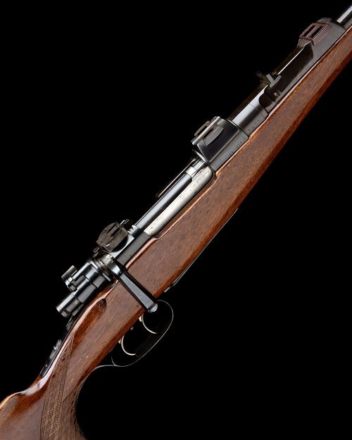 21 3/4in. nitro reproved barrel (in 2013), open sights and ramp-mounted bead fore-sight, receiver mounted with a Karl Kahles Helia S 8x56 telescopic sight in quickly-detachable mounts, receiver with thumb cutout, floorplate with military style release, double set triggers, faceted bolt handle, pistolgrip stock with cheekpiece, pistolgrip-cap, sling swivels, 14 3/8in. pull including 13/16in. ventilated rubber recoil pad