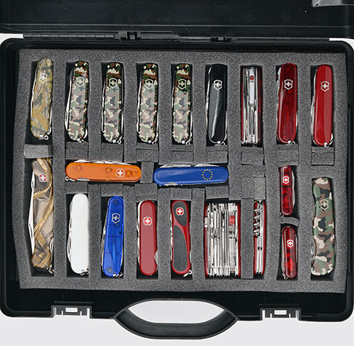 A LARGE COLLECTION OF 37 WENGER , VICTORINOX AND BUCK KNIVES, including a Victorinox SAK Huntsman Shadow Grass Camo, Victorinox SAK Spartan Camo, Victorinox SAK Compact Camo, Victorinox SAK Climber Camo, Victorinox SAK Huntsman Camo, Victorinox SAK Ranger Plus Black, Victorinox SAK Voyager LITE Red, Victorinox SAK Spartan LITE Red, Victorinox SAK Compact Red, Wenger Sak Highlander Mandarin Orange, Wenger Euro SAK Blue, Wenger SAK Camo Ranger C, Victorinox Climber Plus SAK White, Victorinox SAK Spartan Jelly Blue, Wenger SAK Zermatt Red 16400, Wenger SAK EvoGrip 16, Wenger SAK EvoGrip S54,