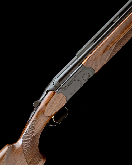 32in. nitro barrels with stepped 10mm ventilated matt top-rib, 2 3/4in. chambers, multi chokes (no spares), hold-open toplever, manual safety, gold-washed adjustable non-selective single trigger, border engraved black action, 14 1/2in. figured pistolgrip stock with palm swell, monte carlo comb and including 1in. ventilated rubber recoil pad, weight 8lb. 15oz.