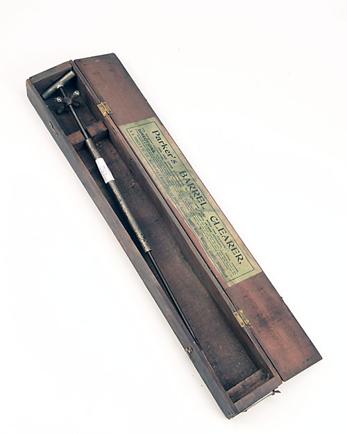 A VINTAGE CASED 'PARKER'S' BARREL CLEARER, with directions for use