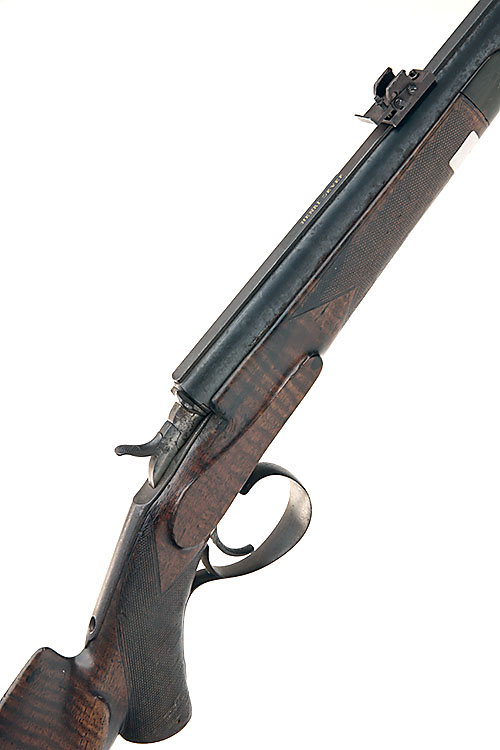 A LEFT-HANDED HENRI .22LR SINGLE-SHOT HAMMER RIFLE, no visible serial number, 27in. barrel with 11mm matted rib, blade fore-sight with windage adjuster, adjustable rear notch sight, 13in. pistolgrip stock with cheekpiece
