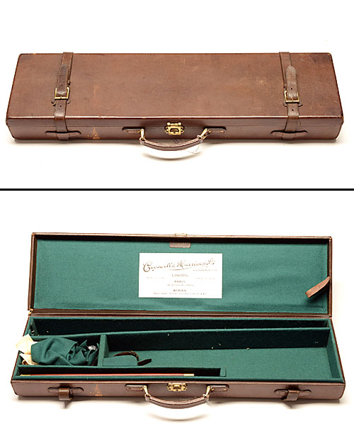 A 'GUNMARK' SINGLE LEATHER GUNCASE, suitable for 30in. barrels, the interior lined with green baize, brass lock (key missing), the interior lid with a 'COGSWELL & HARRISON' trade label