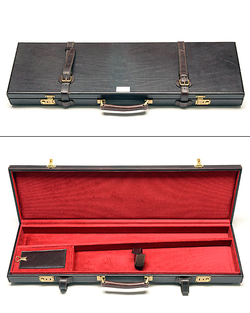 A SINGLE LEATHER GUNCASE, suitable for 30in. barrels, lined with red baize, two brass locks, together with a TAN LEATHER LEG-OF-MUTTON GUNCASE, suitable for 29in barrels