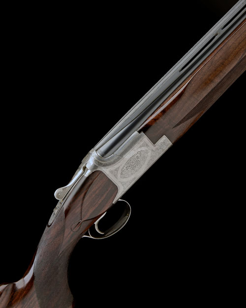 30in. nitro reproved barrels with broad 16mm ventilated matt top-rib with intermediate bead, 2 3/4in. chambers, Teague multichokes (no spares), hold-open toplever, manual safety with integral barrel selector switch, beaded borderwork and with bouquet and scroll engraving, silver finish, 14 3/8in. pistolgrip stock including 1in. ventilated rubber recoil pad, weight 8lb. 1oz.