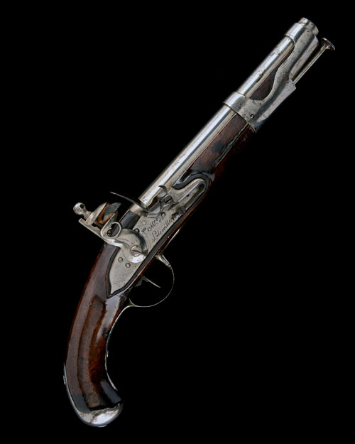 A SCARCE .69 FLINTLOCK SERVICE PISTOL SIGNED LEBREVILLE, MODEL 1763, no visible serial number,