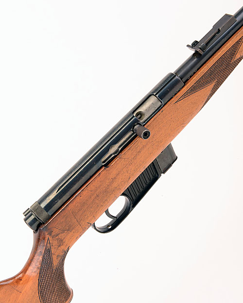 TWO .22 L.R. SPORTING RIFLES, a) VOERE .22 L.R. SELF-LOADING SPORTING RIFLE, serial no. 127434, 21 1/4in. nitro barrel, fore-sight missing, 14 1/4in. pistolgrip stock, removable magazine, sling swivels
